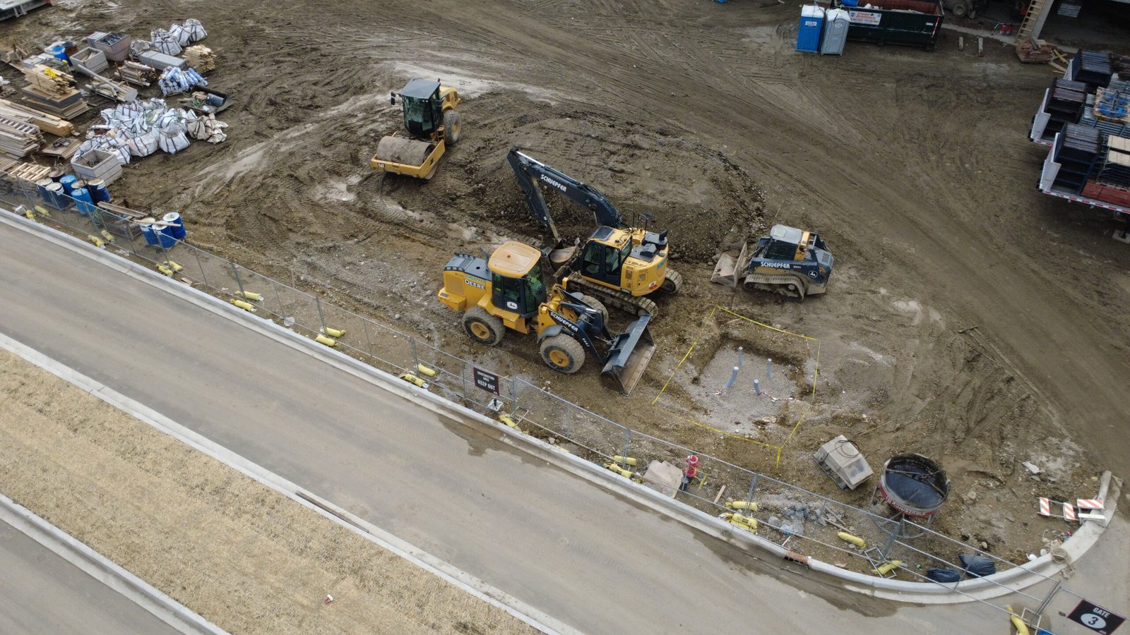 The aerial operation was conducted in compliance with FAA Part 107 regulations, ensuring safe and efficient flights over an active construction environment.